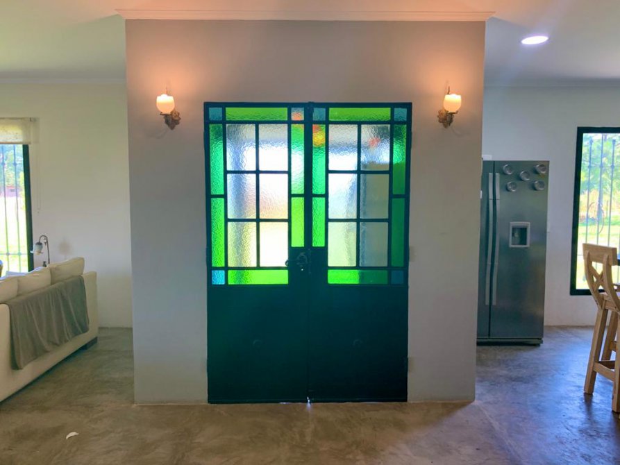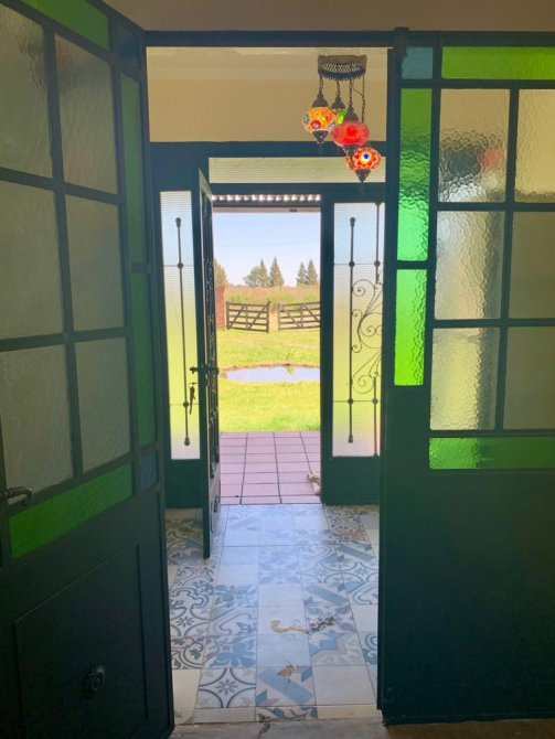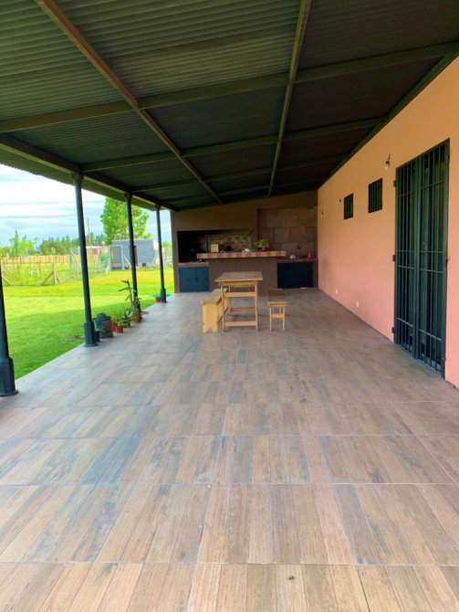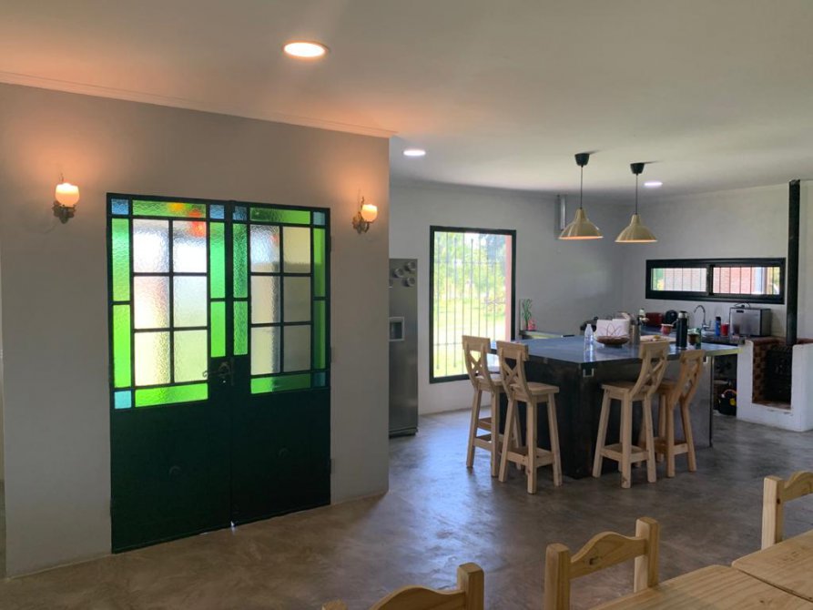 Galeria de 12 x 4 mts., con parrilla , mesada , bacha , barra . Pisos de microcemento y porcelanato . Aberturas con doble vidrio y rejas de hierro tipo colonial . Black -Out .