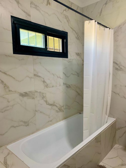 4 dormitorios , 1 en suite , 1 baño completo . Servicios : luz , agua de pozo ( bomba ) , 2 pozos ciegos , gas envasado( tubo grande ) .