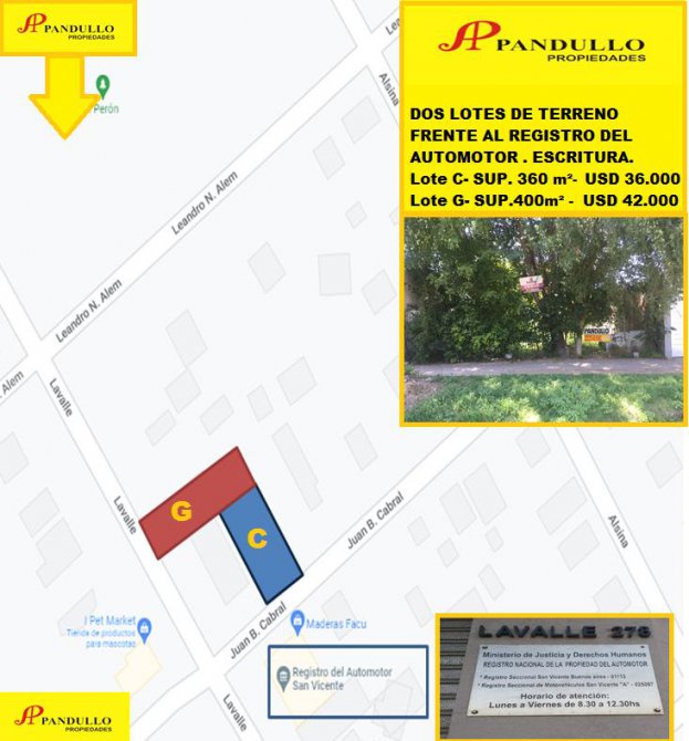 Dos lotes de terrenos en pleno centro comercial, frente al Registro del Automotor, San Vicente .